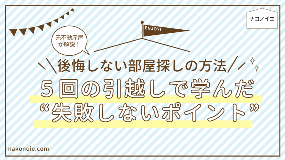 元賃貸仲介の営業マンとして100件以上の内見に同行してきた私が、自分の部屋を探す際にも重視した“後悔しない部屋探し”のポイントをまとめました。
